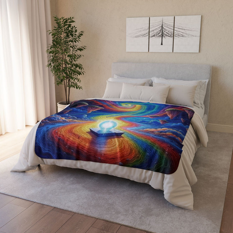Prism Planet Light Orb Blanket is a cozy and soft fleece sherpa blanket that will add a touch of whimsy and fantasy to your home decor. Perfect for dragon lovers and fantasy enthusiasts, this vibrant blanket is ideal for snuggling up on the couch or adding a pop of color to your bed. It is relevant to holidays like Halloween and Christmas, as well as for fantasy-themed events and birthdays.